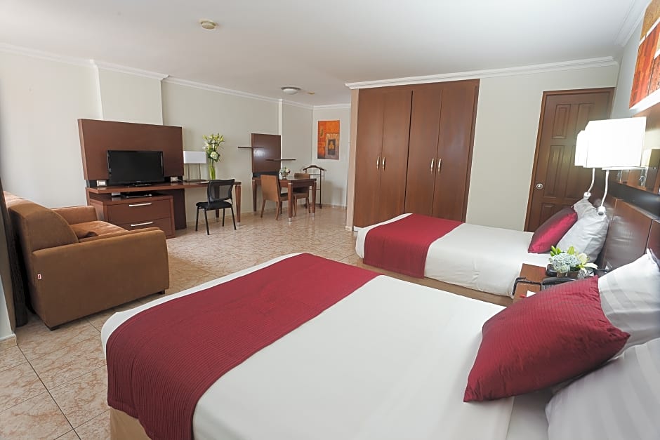 This modern, spacious suite offers a seating area with sofa bed and 32-inch flat-screen TV. The fully equipped kitchen contains an oven/stove, microwave and fridge. There is a private bathroom and large wooden work desk. Free Wi-Fi is available.